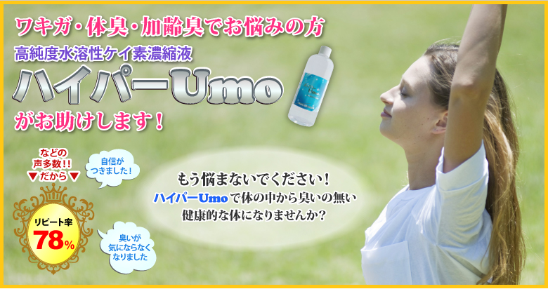 この「ハイパーUmo」を飲用するだけで、自分に自信を持つことができ、これまで悩み続けてきた「臭い」の問題とサヨナラできます。